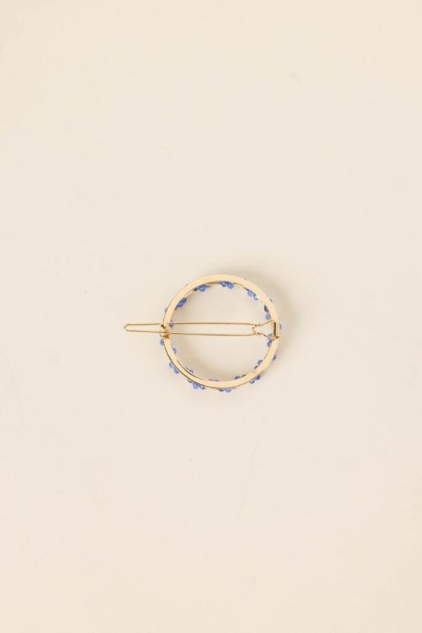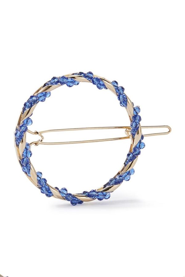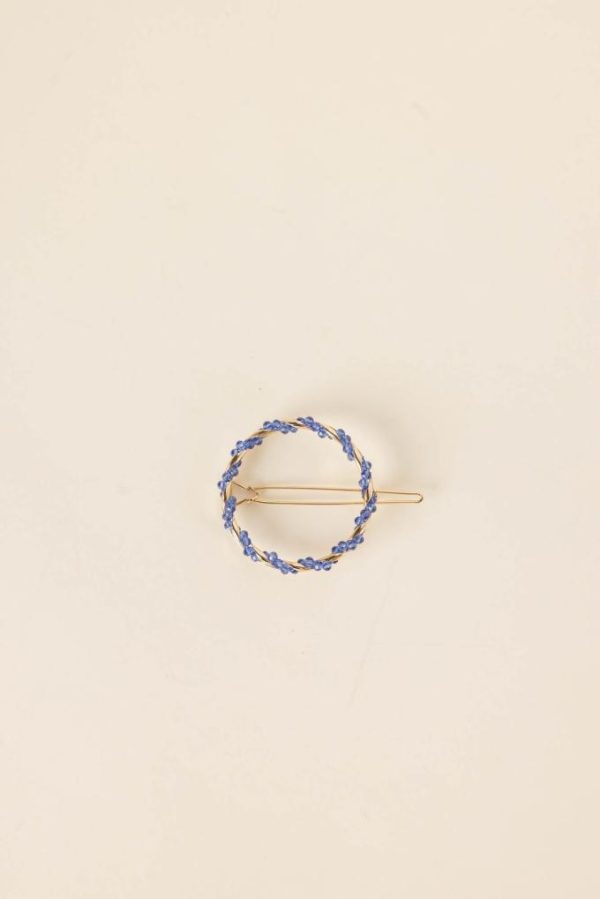 Ajoutez une touche colorée à vos coiffures avec la barrette Cueillette doré et bleu.