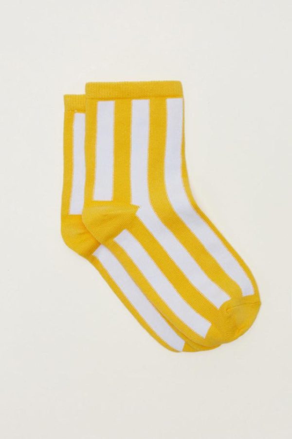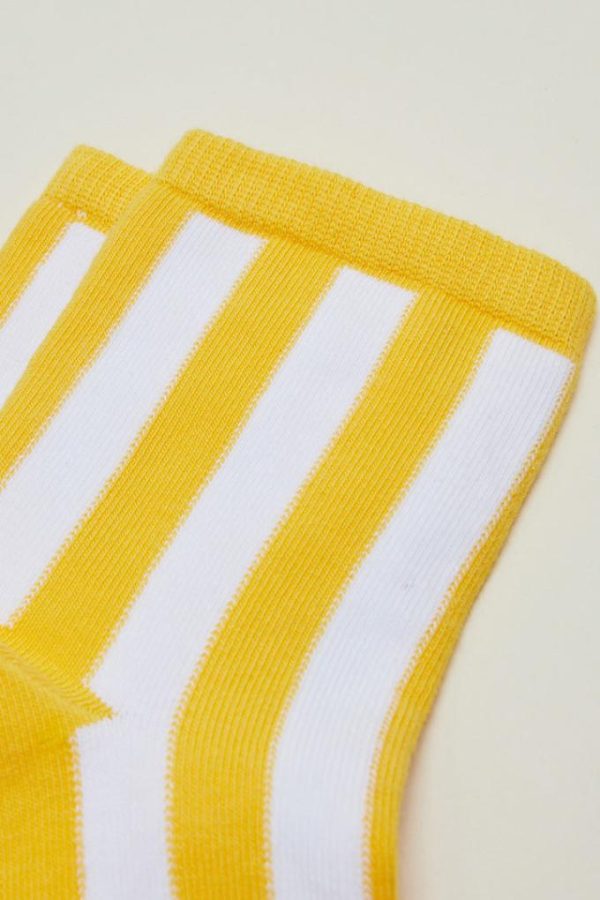 Donnez un style rétro à vos looks avec les chaussettes Empreinte rayures jaune.