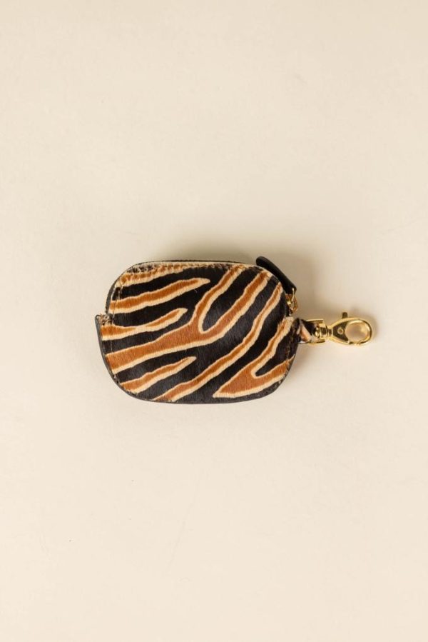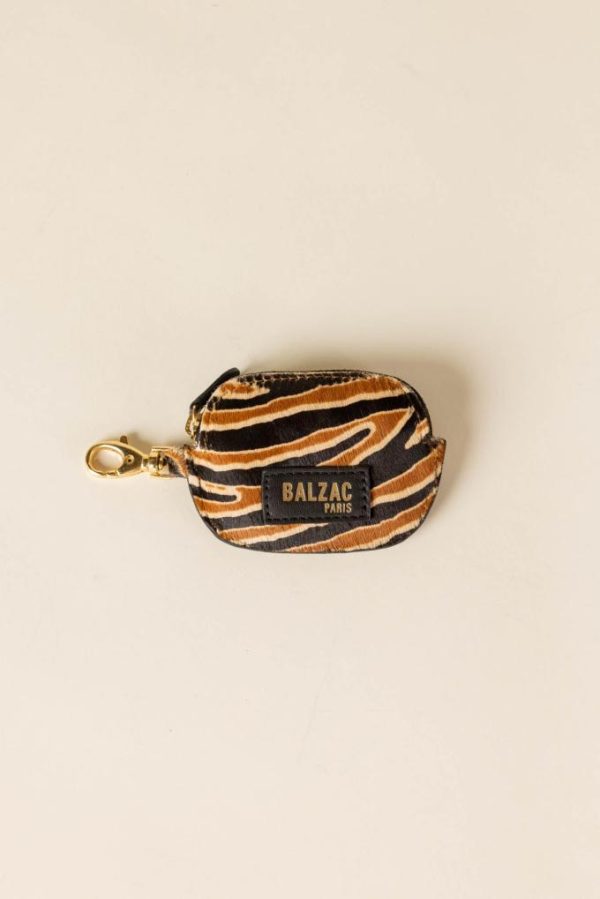 Notre iconique porte-monnaie Ziggy se décline en mousqueton pony tigre ! En 100% cuir, associez-le au Sac César pour apporter une touche Grrr !